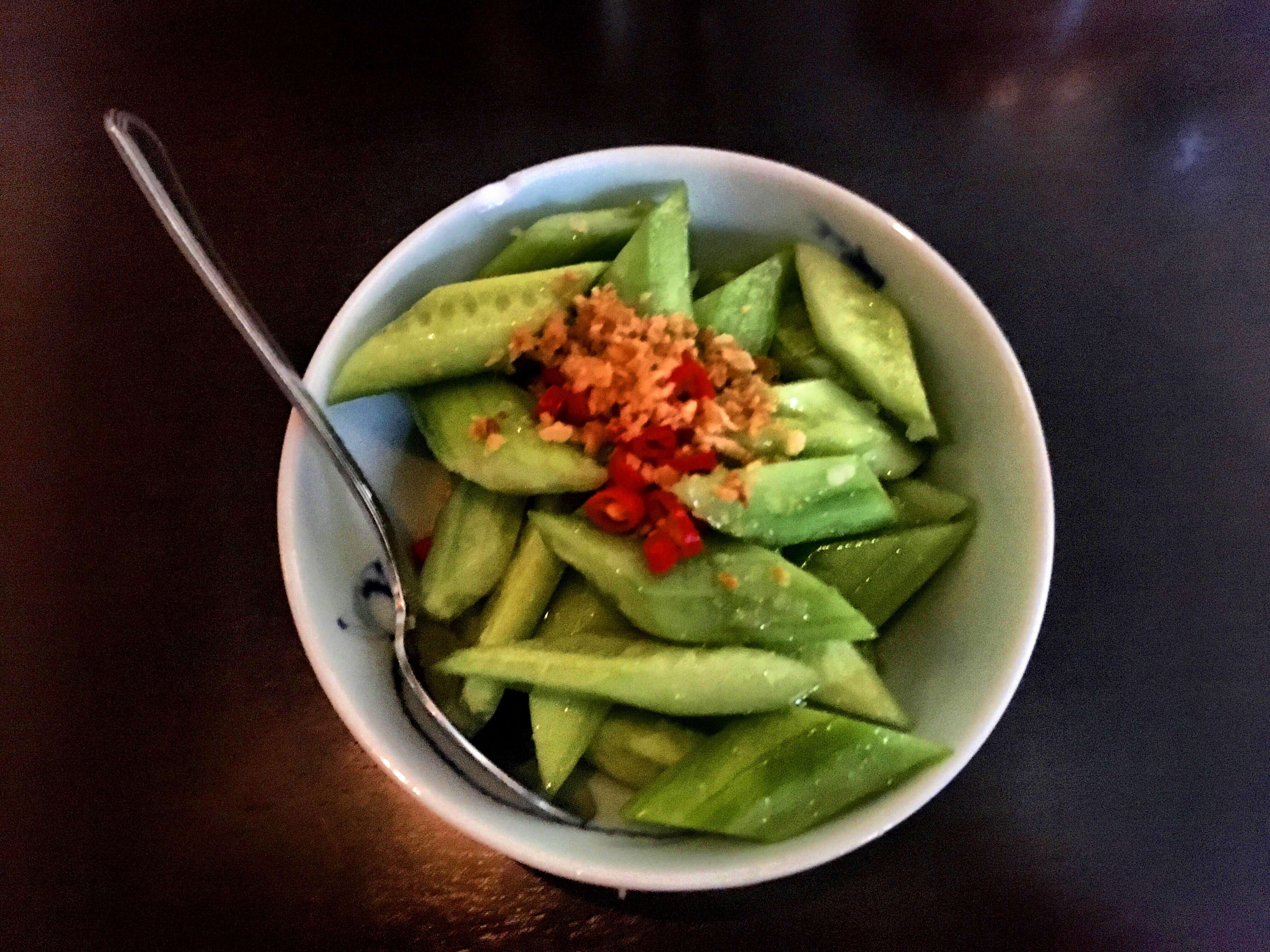 Concombre à l’ail, champignons et tofu, Xiao long bar au porc (pour moi les meilleurs …).