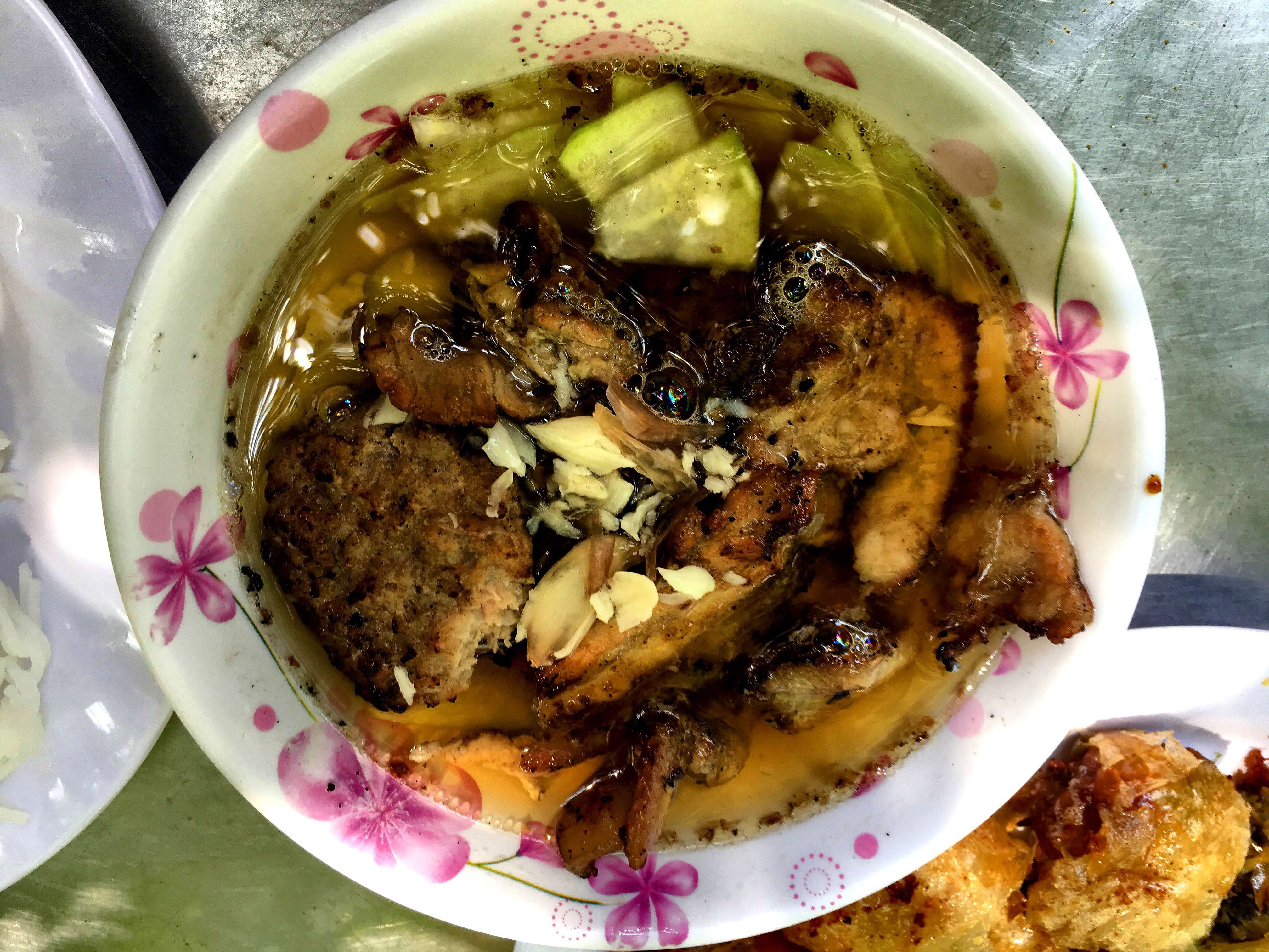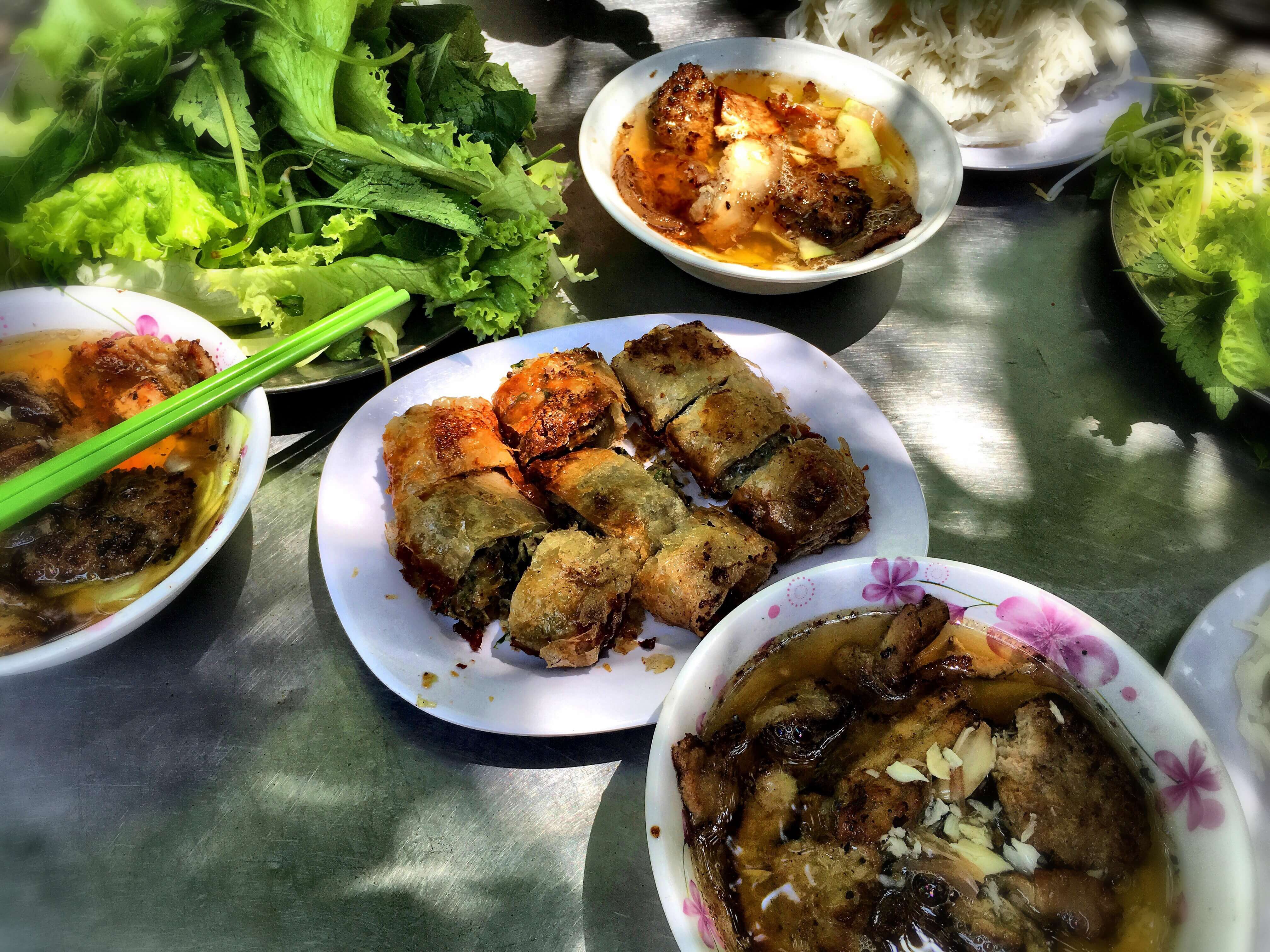 Le meilleur Bun cha de toute ma vie se trouve dans les rues de Saigon! C’est simple, j’en ai mangé de très bons, mais alors celui là est divin. La viande est parfaitement assaisonnée, les herbes (notamment le shiso vietnamien) fraîches à souhait sont très variées… le bouillon est savoureux … et on mange dehors ! Les conditions parfaites sont réunies. Nous avons également commandé des nems … qui étaient aussi divins.