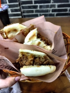 Commandez des crêpes asiatiques et installez-vous dans le petit resto d’à côté pour déguster des sandwichs au porc effiloché, sans oublier le jus de prune sucré salé… Délicieux ! Mais gardez un peu de place pour la suite car les spots de street food sont nombreux dans le quartier 🙂